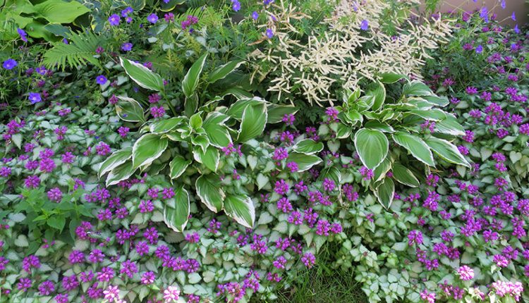 In case you have not noticed, grass does not grow very well beneath trees or in the shade. However, there are ground covers that will obligingly cover the ground and even bloom in shade. One of the most popular ground covers is Ajuga. Ajuga has bronze-green leaves and lovely spikes of purple-blue flowers. It is evergreen, useful for erosion control and will spread with alacrity. There are other ground covers to choose from, but just be sure they are not invasive plants.