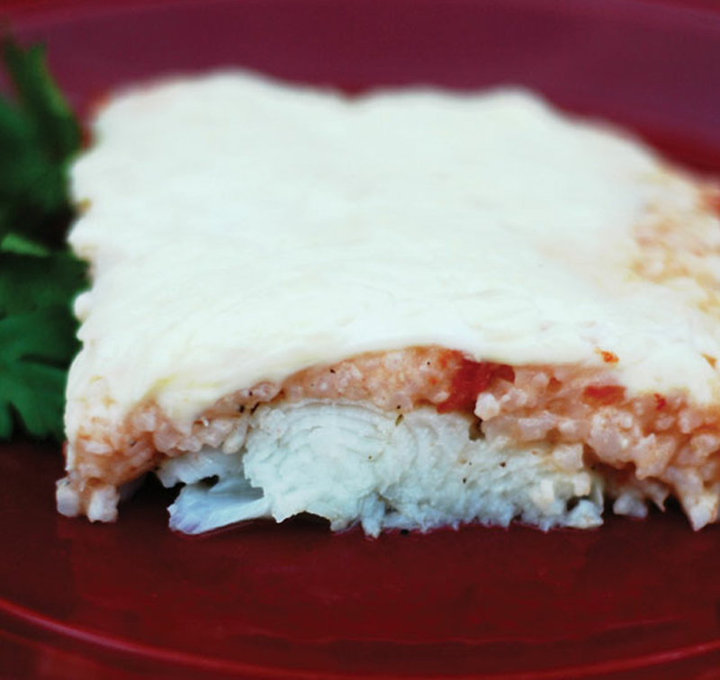 Spread the rice mixture over the fish. Top with remaining mozzarella and cover with aluminum foil. |